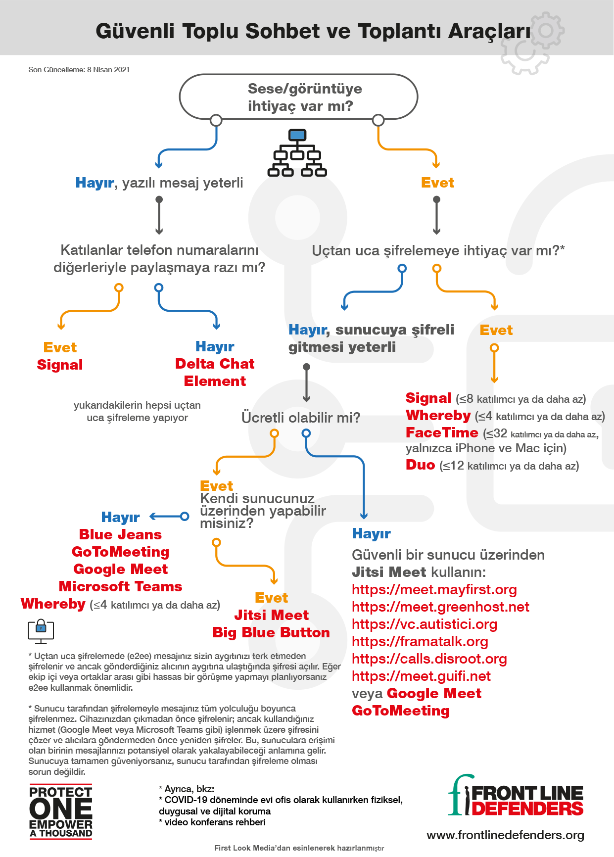 Front Line Defenders belirli ihtiyaçlarınız için doğru aracı seçmenize yardımcı olabilmek için bu kısa rehberi hazırladı. Bu rehber ile sağlıyoruz: